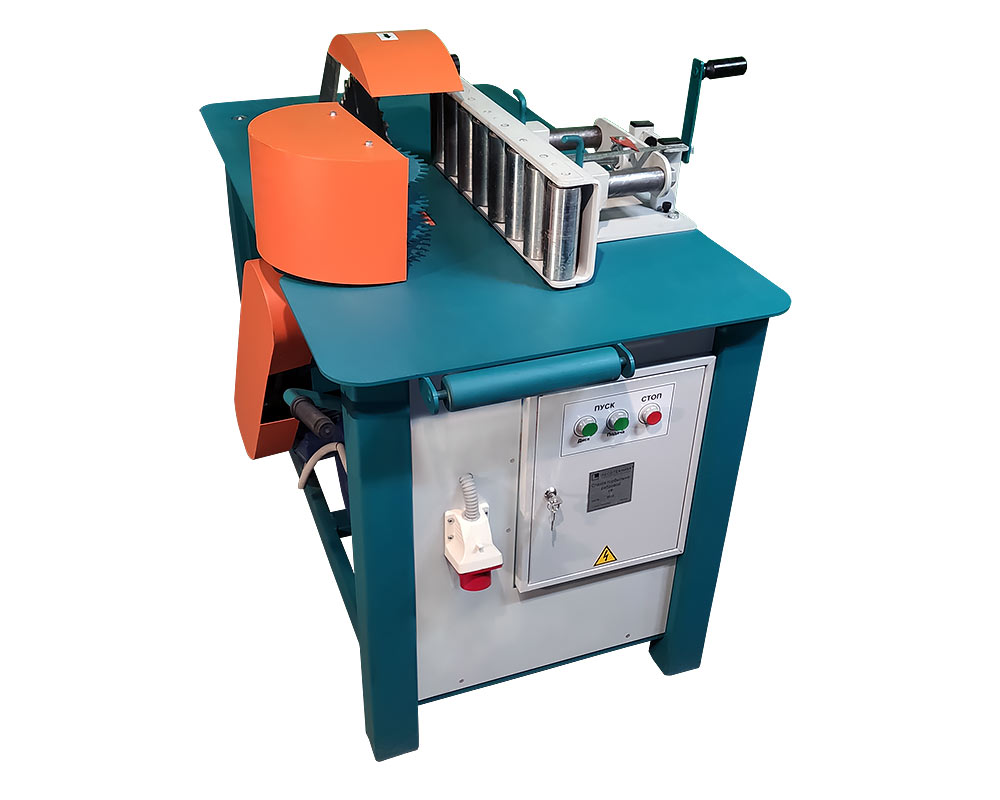 - Подающий механизм оснащен червячным редуктором и равномерно прижимает заготовки любого размера к роликовой линейке.