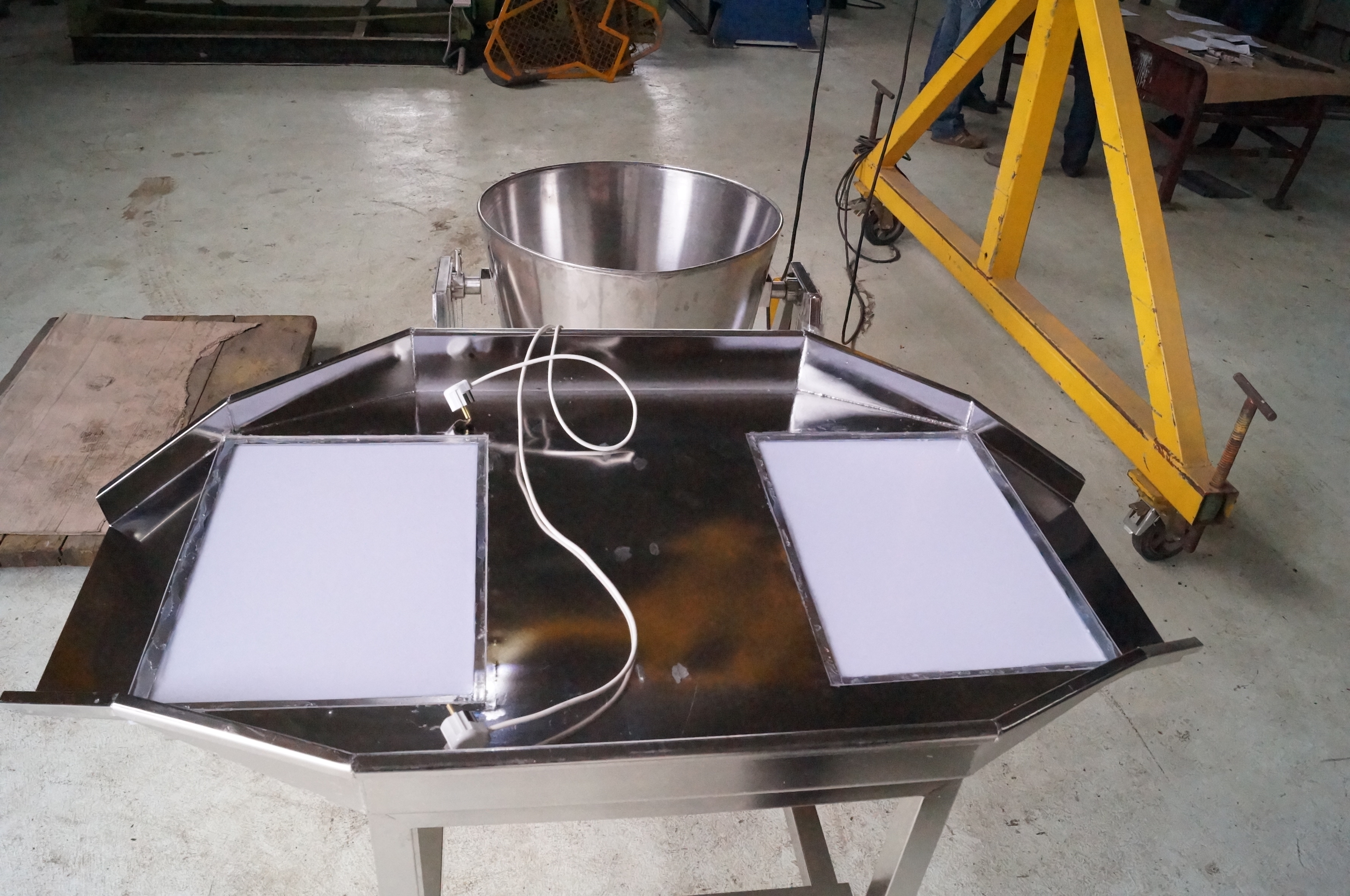 Стол для инспекции икры с двухсторонней выгрузкой. Габариты 1900*900*1000. Возможно исполнение под ваши размеры.