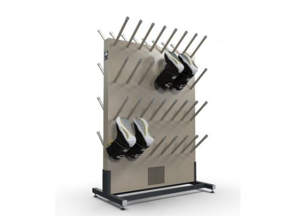 Сушильный стеллаж для обуви на 50 пар Премиум мобильный предназначен для бережной сушки всех типов обуви, в том числе и коньков, горнолыжных ботинок, ботинок для беговых лыж, а также перчаток. Управление настройками сушильного стеллажа производится при помощи панели управления с ЖК-дисплеем. Присутствует возможность задавать время работы и температурный режим сушки от 0 до 800С. Оснащен роликами с фиксаторами, что позволяет переместить его в любое место силами одного человека. Возможна дополнительная комплектация бактерицидной либо УФ лампой для дезинфекции и удаления неприятных запахов в обуви.