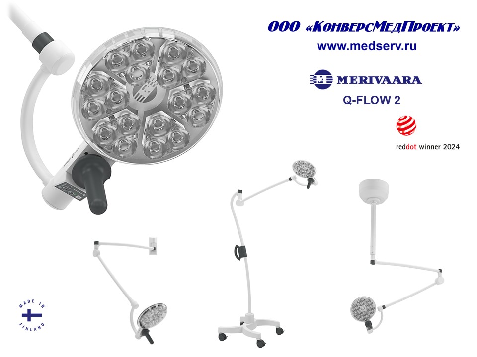 ООО «КонверсМедПроект» на правах официального дилера представляет светодиодные светильники для медицинских процедур и малых операций Q-Flow 2 производства Merivaara, Финляндия.