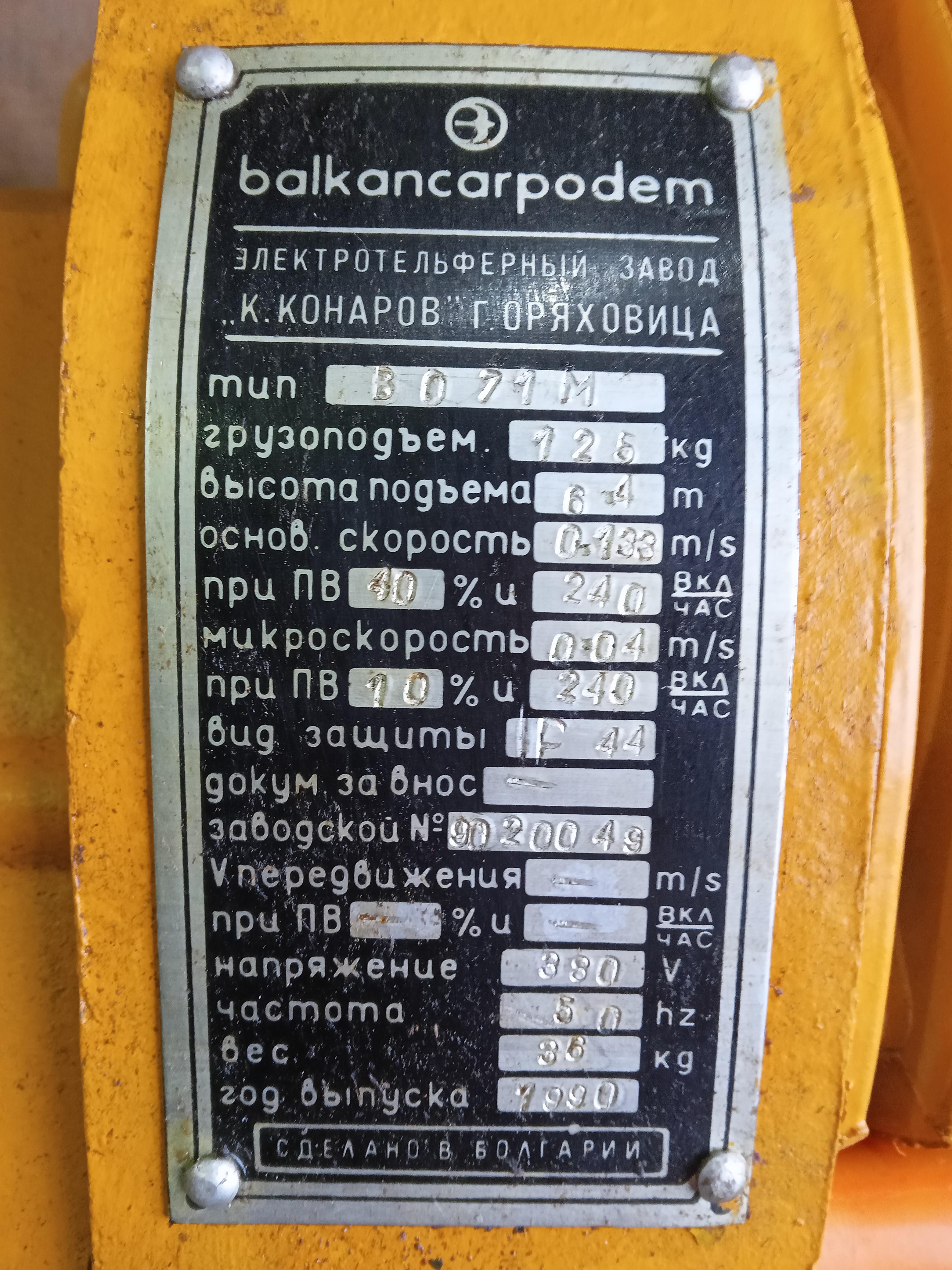 На заставке таль эл. цепная г/п 0,125т, в/п 6,4 м (Болгария), в идеальном состоянии.