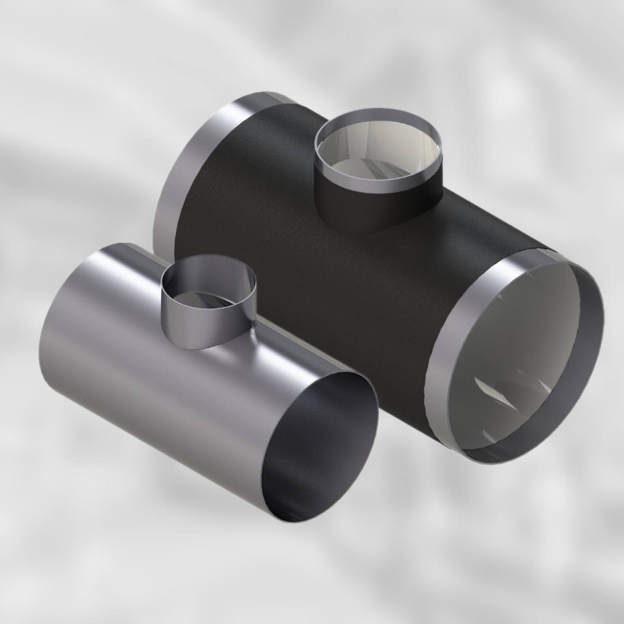 Тройники стальные штмпосварные ТШС для газо- и нефтепроводов. Изготавливаются в соответствии с МУ ЕТТ ПАО "НК "РОСНЕФТЬ". Возможно нанесение изоляции и антикоррозионного покрытия внутреннего и наружного в соответствии с едиными техническими требованиями.