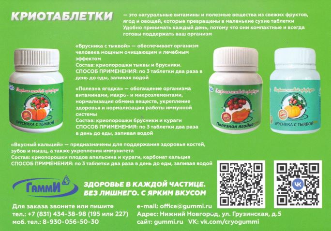 - Натуральные растительные криокомплексы из суперфудов для приготовления смузи и обогащения готовой пищи;