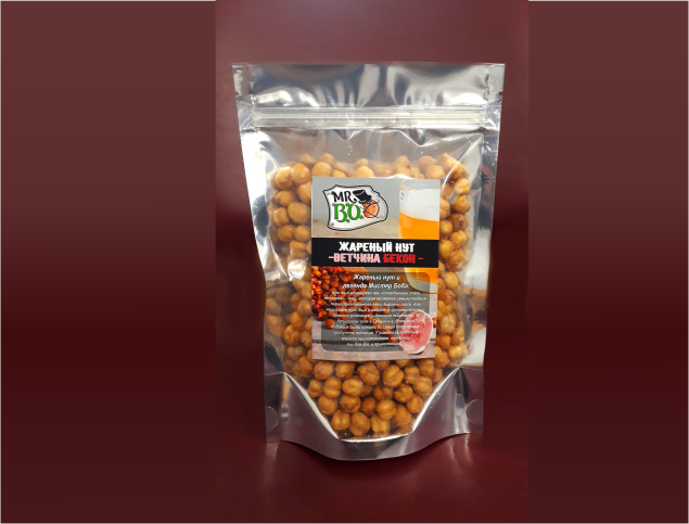 Жареный нут в пакет дой-пак металлизированный с прозрачной стороной и с замком зип-лок 105*150+(35+35) мм. Масса нетто 60 гр.