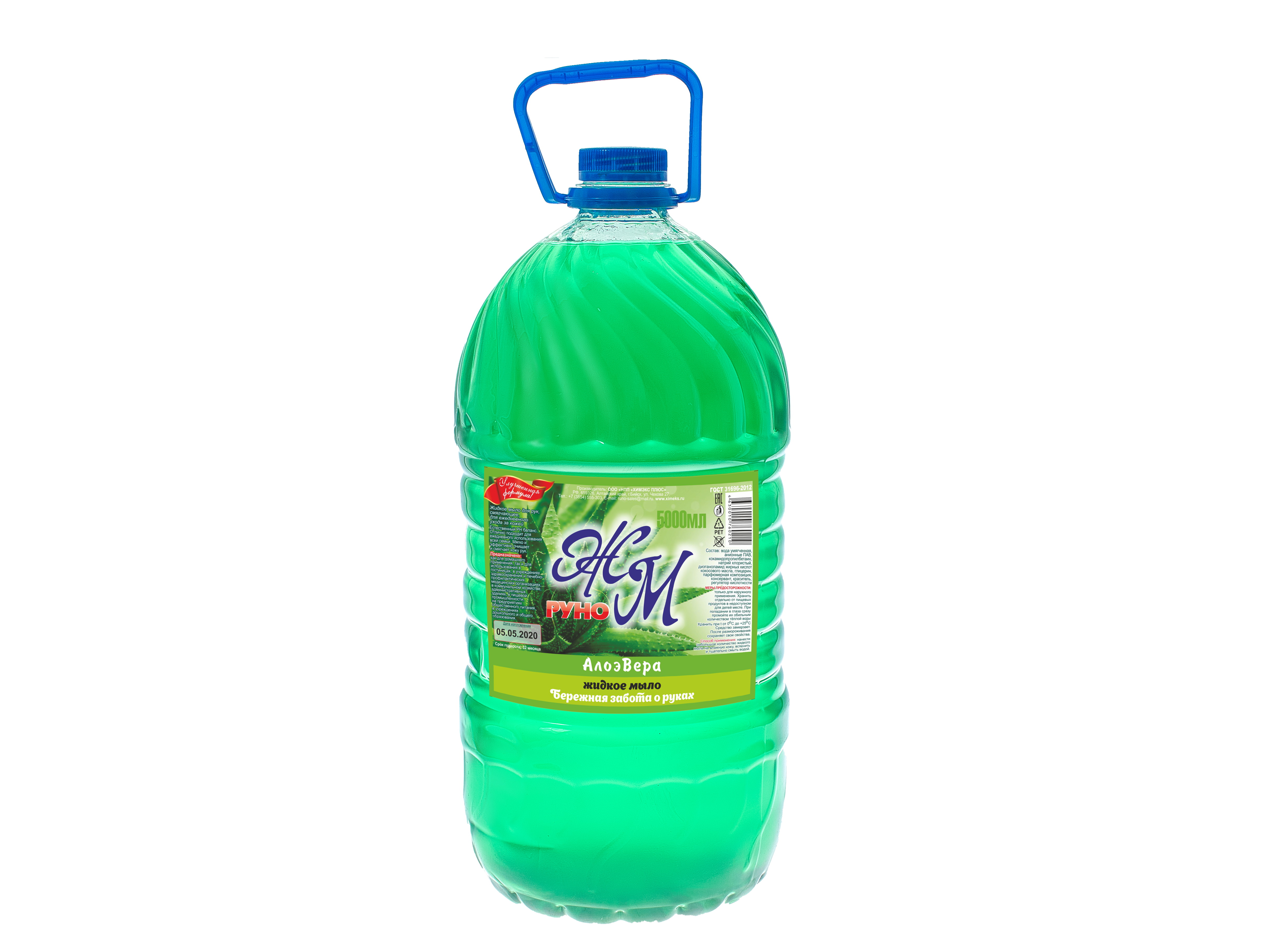 Упаковка: ПЭТ бутылка с дозатором и пуш пул 500 мл. ПЭТ бутылка 5000 мл.