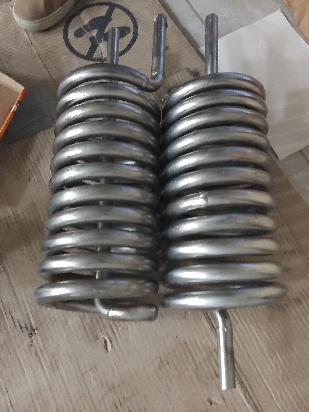 Змеевик из нержавейки, меди, спираль из трубы. Производство змеевиков, спиралей и гнутых отводов из труб Ду 6 - 57 мм, материал изготовления ст. 20, 12Х18Н10Т, 12Х1МФ, 09Г2С. От простых до промышленных - градирня как аналог EVAPCO, аналоги Керхер. Гидроиспытания готовых змеевиков и контроль качества швов. Указана приблизительная стоимость заказа. В финальную стоимость входит сложность исполнения, количество витков, расходные присоединительные материалы при необходимости. Для заказа змеевиков необходимо указать в заявке: Материальное исполнение (сталь) Труба (размер) мм Размеры (д*ш*в): фD мм (Диаметр наружный) Шаг (расстояние между спиралями) мм Количество спиралей: Выходы (под приварку, фланцы, резьбовые)