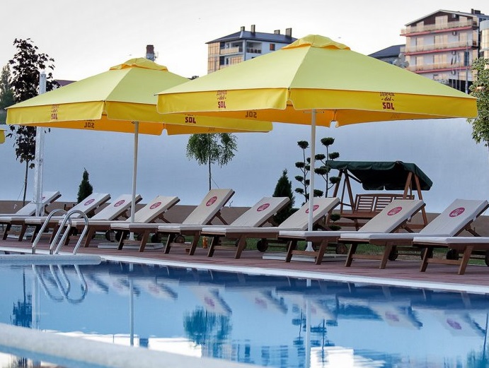 Профессиональный торговый зонт. Благодаря телескопическому механизму открывания-закрывания не требует при закрытии эвакуации торгового стола из-под зонта. Основное применение - оборудование торговых рядов европейского образца, оснащение уличных кафе и ресторанов, пляжей и гостиничных комплексов.