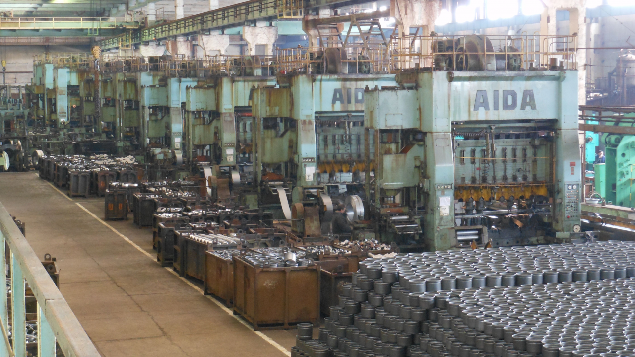 Завод производит изделия из металла.