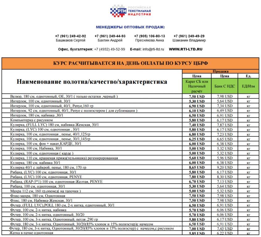 Компания трикотажного полотна, отвечающее всем необходимым характеристикам и имеющее сертификаты качества.