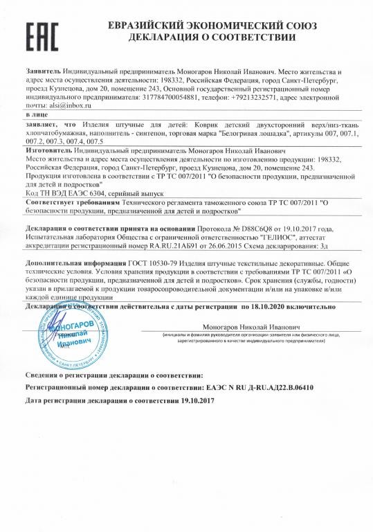 Предприятие занимается производством товаров для детей: качелей, ковриков игровых.