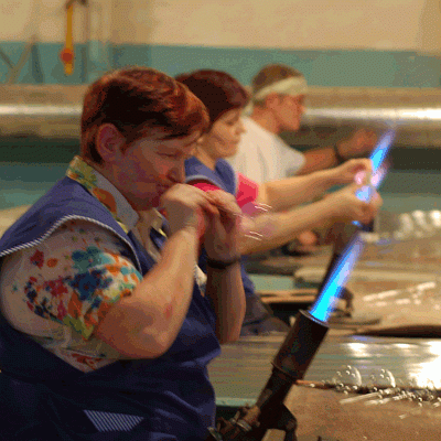 Фабрика специализируется по выпуску стеклянных ёлочных украшений ручной работы.