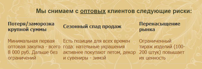 Фирма производит ювелирную, сувенирную продукцию.