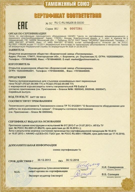 Завод производит переносные вулканизационные прессы для горно-металлургических предприятий, конвейерах, угольных предприятиях.