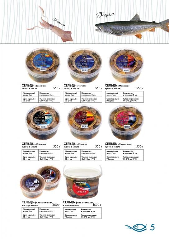 Компания производит пресервную продукцию: сельдь, скумбрия, горбуша, семга и форель в масляной и майонезной заливках с различными специями.