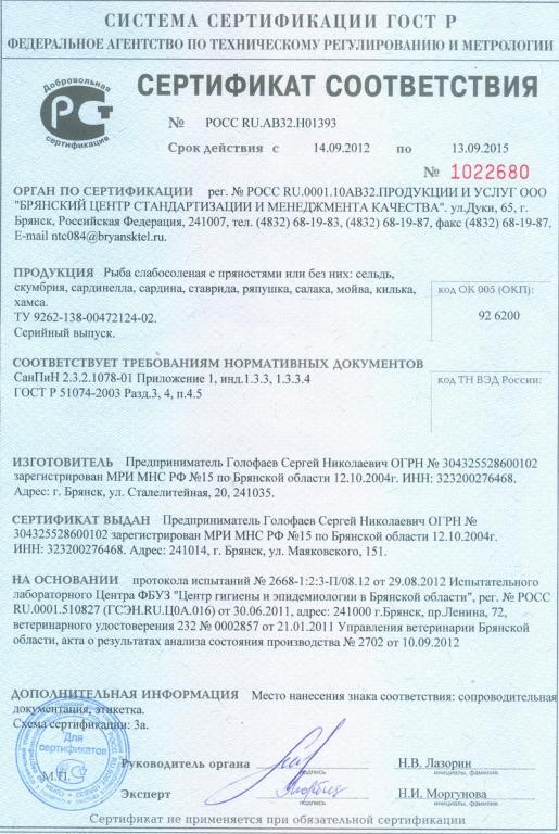 Компания занимается производством и реализацией замороженной, копченой, соленой рыбы, вакуумированных даров моря, готовых салатов.