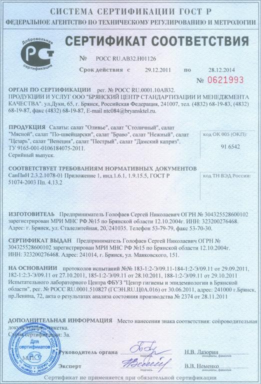 Компания занимается производством и реализацией салатов и готовой кулинарии.