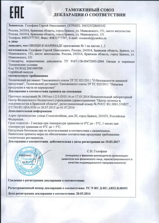 Компания специализируется на изготовлении салатов и солений.