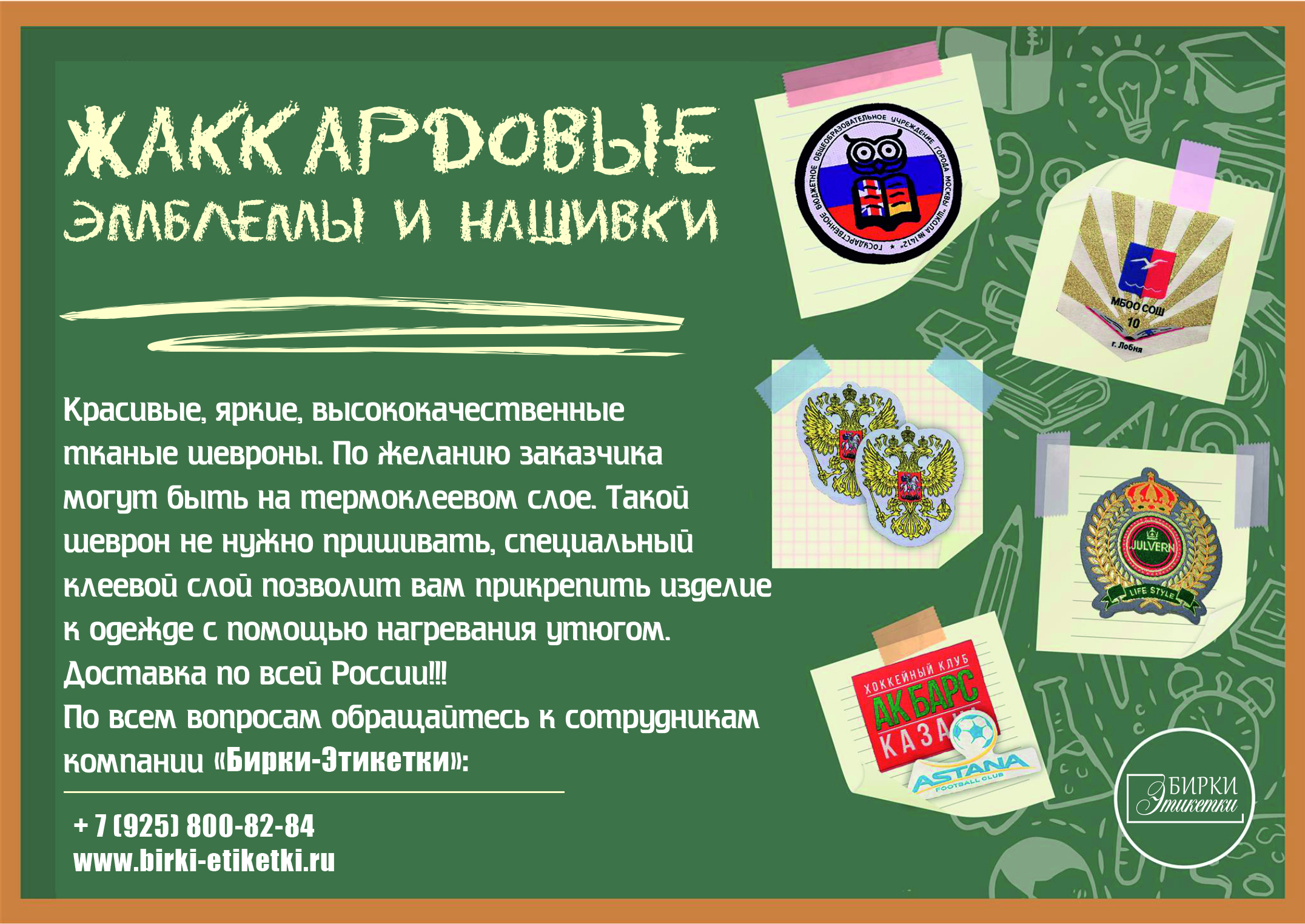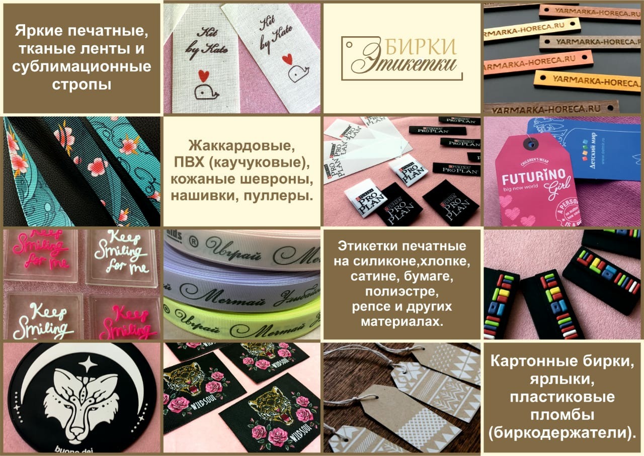 Производим полный комплекс этикеточной продукции для швейных предприятий: жаккардовые бирки, картонные ярлыки, нашивки, шильдики, тканевые этикетки, текстильные ленты и СТРОПЫ с лого, разные виды шевронов и многое другое.
