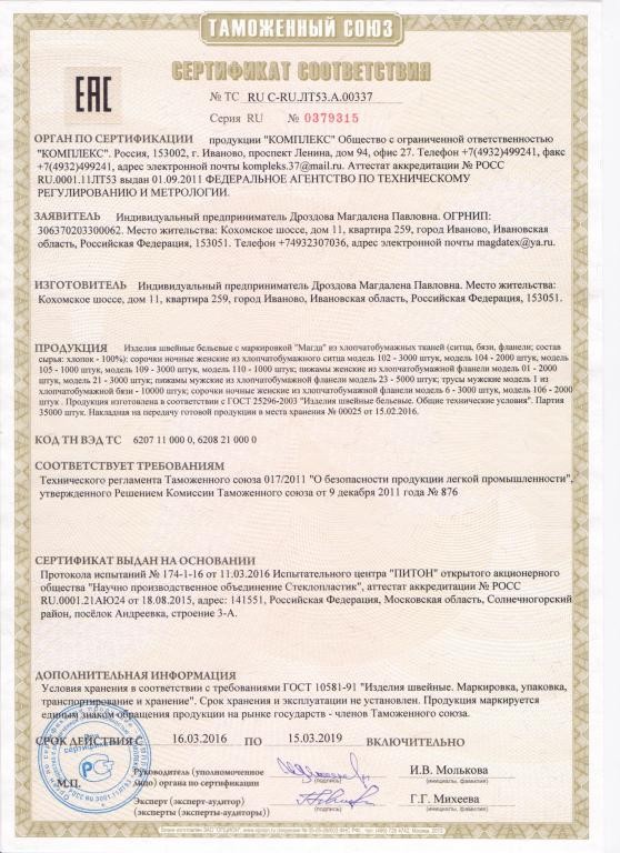 Компания выпускает трикотажные изделия: изделия для малышей и подростков и другое.