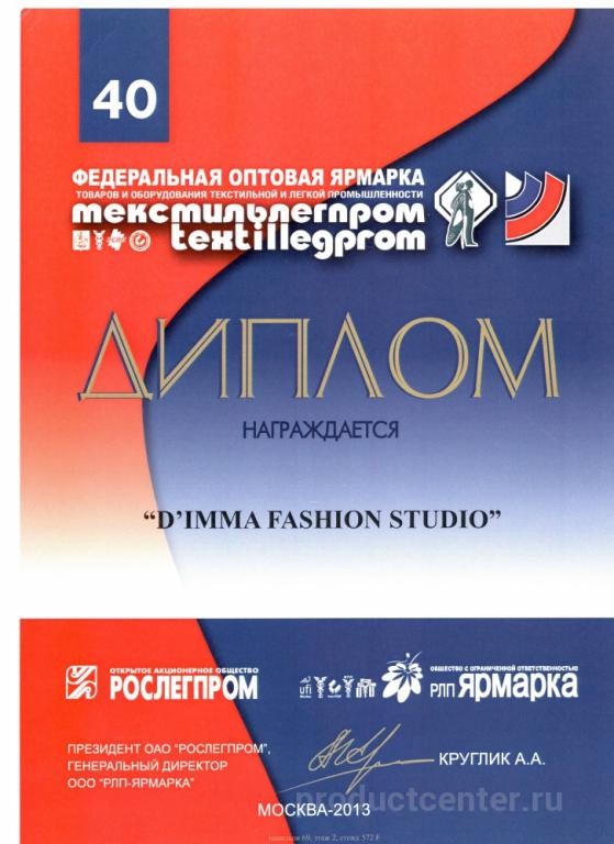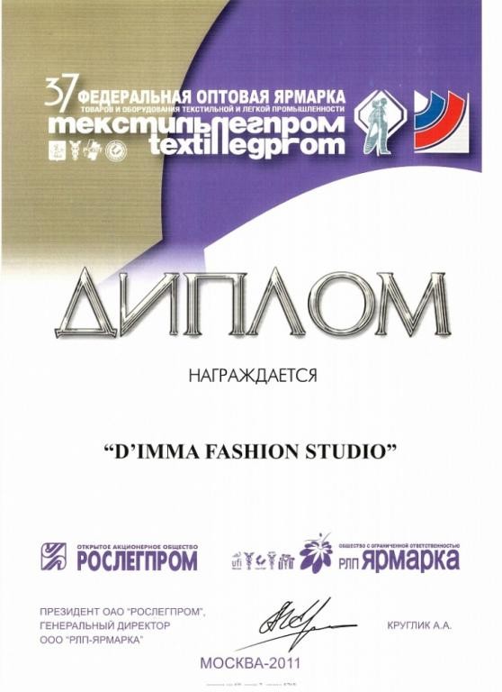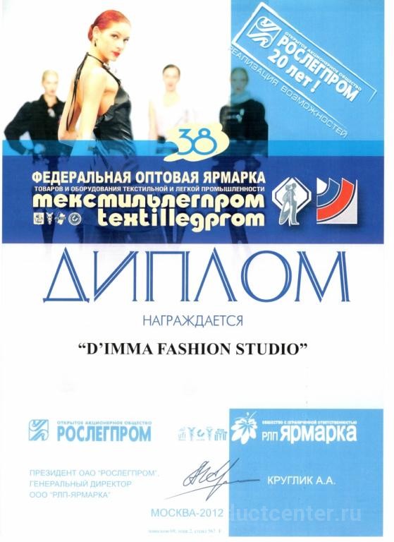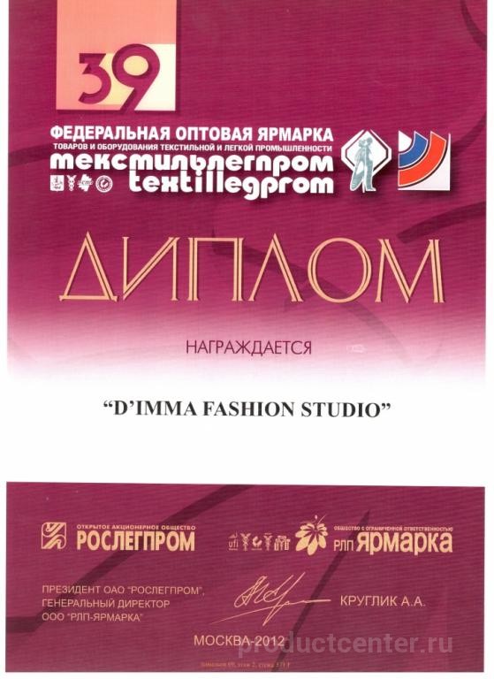 Бренд D`imma был создан в России в 1997 году. Для представительниц прекрасного пола ежегодно создаются три новые коллекции: осенне-зимняя, весенняя и летняя. Над созданием моделей трудятся дизайнеры с высшим образованием, ученики Вячеслава Зайцева. Компания работает только с качественными материалами (синтетическими и натуральными), которые проходят тщательную проверку. Качество фурнитуры находится под особым контролем. Компания старается, чтобы наши изделия сочетали в себе не только последние тенденции мировой моды, но и качество и практичность. Компания D’imma Fashion Studio старается учесть и удовлетворить потребности и запросы клиентов всех возрастных групп, обладающих разными особенностями фигуры. Поэтому фирма всегда производит одежду с размерным рядом 42 – 70 размера. В каждой коллекции представлено до 40 моделей, произведенных в 10 цветах и расцветках, что позволяет покупательницам выбирать товар на свой вкус.