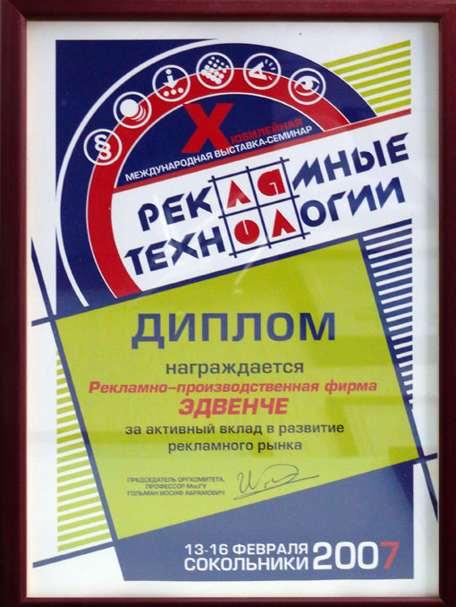 Производственная компания «Эдвенче» осуществляет производственную деятельность с 1994 года и базируется в городе Санкт-Петербург. Компания занимается производством и реализацией надувной рекламой и конструкций. Готовая продукция в обязательном порядке тестируется и проверяется на соответствие заявленным качественным характеристикам.