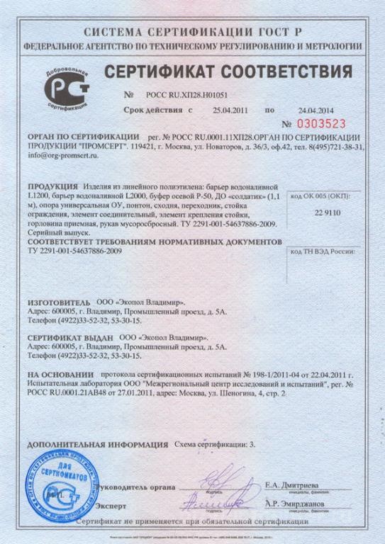 Компания Экопол Владимир является современным высокотехнологичным предприятием, которое проектирует и производит крупногабаритные пластиковые изделия методом ротационного формирования. Ассортиментный перечень предприятия включает большое количество как широко распространенной и востребованной продукции так и современных, инновационных изделий — заглубляемые мусорные контейнера, пластиковые понтоны и катамараны, топливные баки, пустотообразователи и т. д. Вся продукция имеет действующие сертификаты соответствия и санитарно-эпидемиологические заключения.