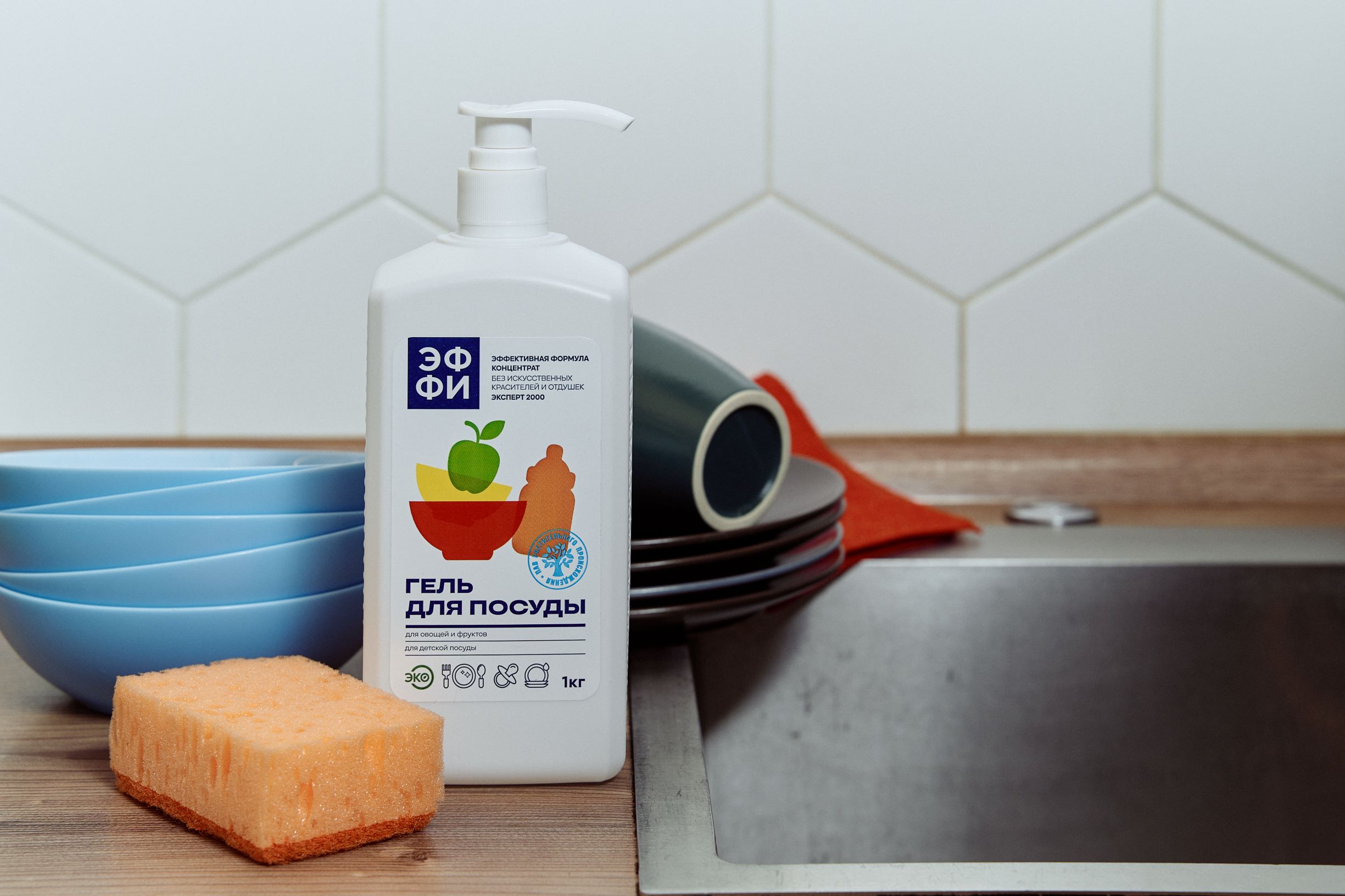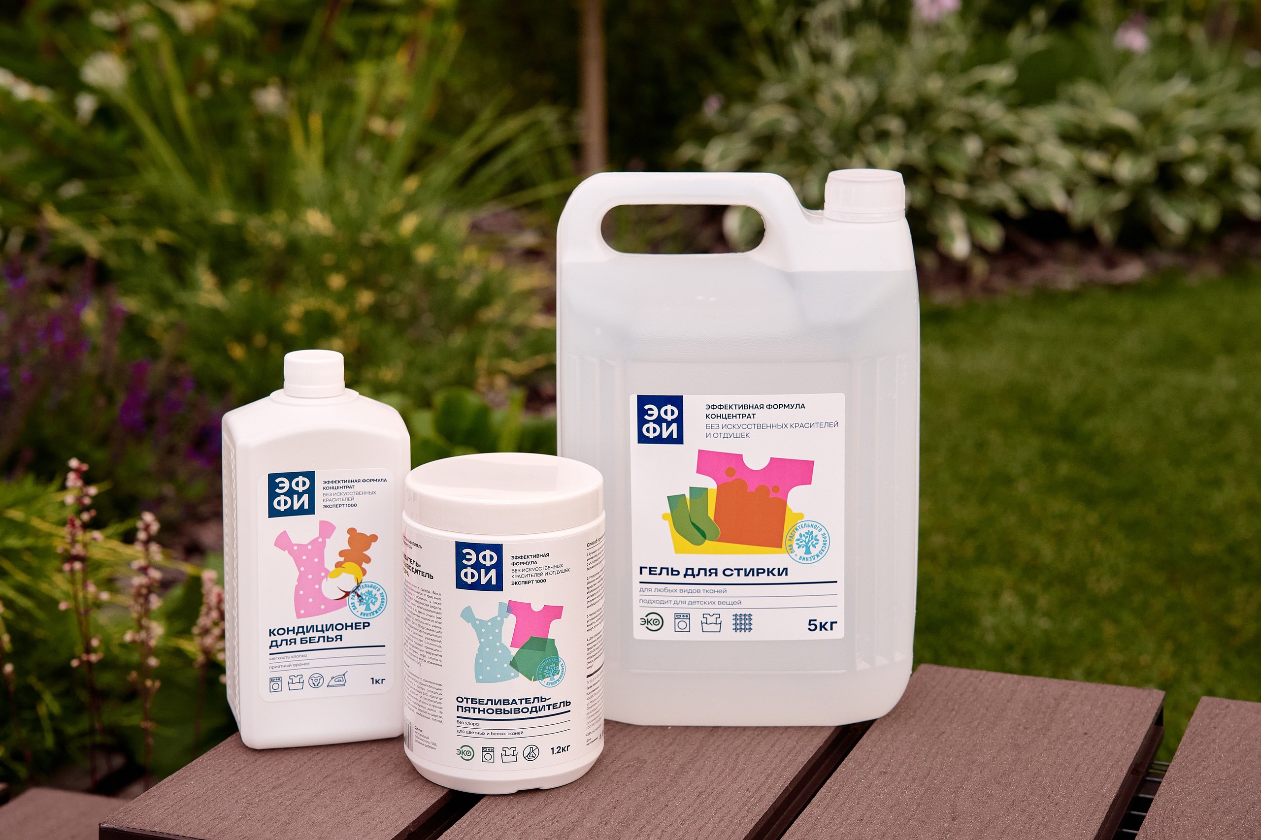 Бытовая химия под брендом ЭФФИ - Эффективная формула - концентрированные средства с высоким моющим эффектом без синтетических красителей и отдушек. Гели для стирки, кондиционеры, гели/спреи для ванны и кухни, гели для мытья посуды, концентраты для поверхностей, средства для посудомоечных машин, дезинфицирующие средства, мыла.