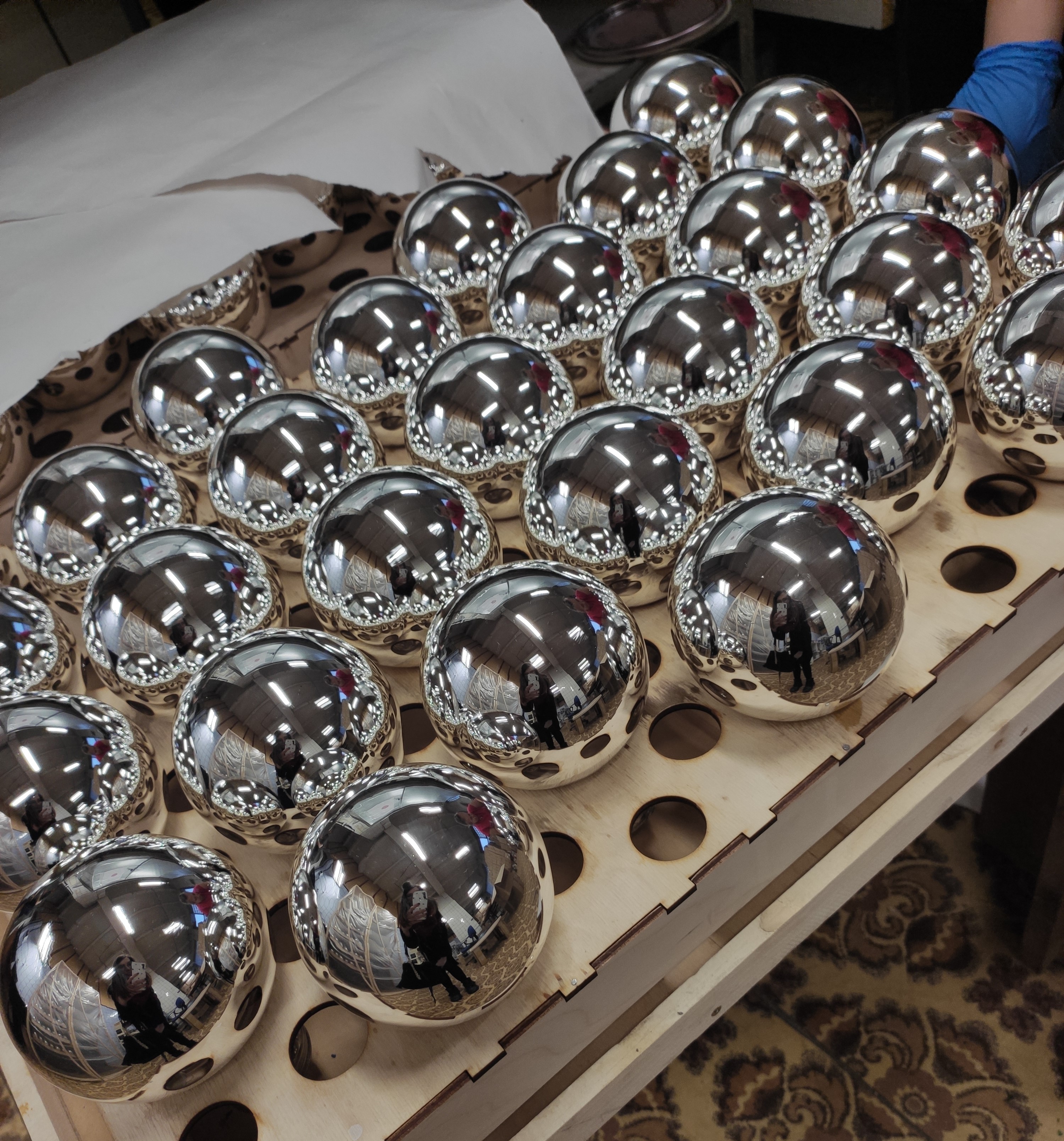 Наши производственные помещения оборудованы современными устройствами, необходимыми для производства шаров. Мы гордимся нашим сложным, надежным и прогрессивным оборудованием, которое позволяет создавать качественные изделия. Ценность нашей компании — это команда людей, с Радостью и теплом, делающих прекрасные елочные шары. У нас есть оригинальные рецептуры, свои авторские фишки и творческие наработки, которые придают нашим шарам особый шарм.