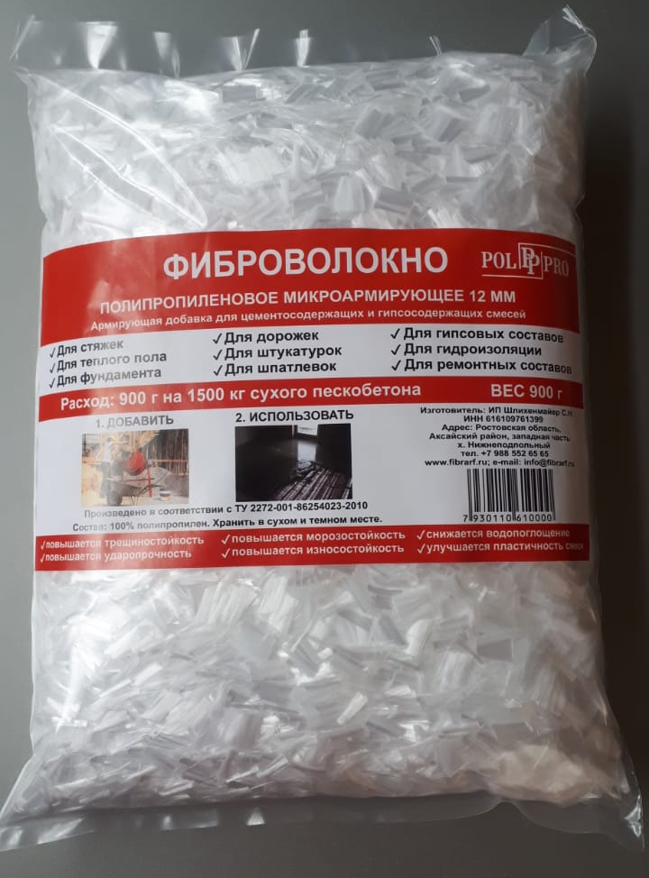 Основным направлением деятельности Компании Фибра-РФ является производство и продажа полипропиленового микроармирующего фиброволокна 6 мм, 12 мм, 20 мм и 40 мм - это модифицирующая добавка для объемного дисперсного армирования цементосодержащих и гипсосодержащих смесей, бетонов и изделий в гражданском, промышленном, дорожном, сельскохозяйственном и культурно-бытовом строительстве, снижает процесс трещенообразования, увеличивает прочностные характеристики бетонов.