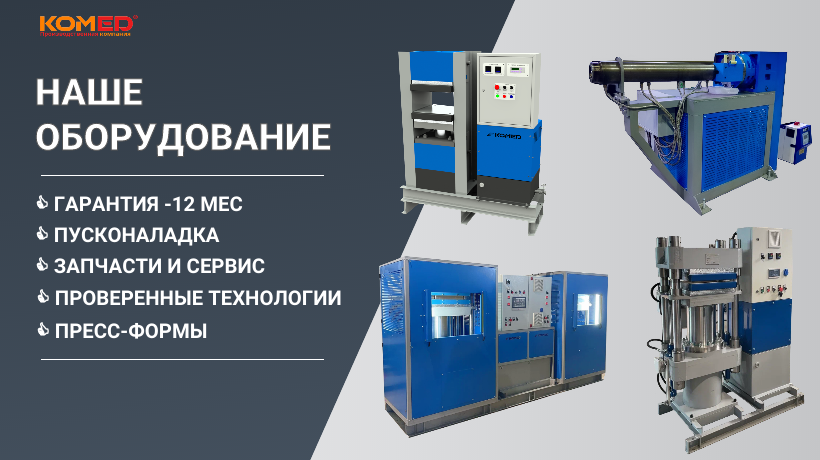 ООО КОМЕД является производителем оборудования для изготовления РТИ. Мы выпускаем вулканизационные прессы, червячные машины, гильотины для резки вязких материалов, тянущие устройства для линий экструзии, вальцы для перемешивания резиновых смесей.