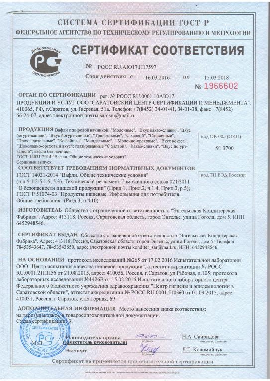 Кондитерская фабрика «Саратовская», известная ранее под брендом Confashion (Конфэшн), возобновила свою работу. На сегодняшний день предприятие выпускает известную продукцию по улучшенным рецептурам. Выпуск готовой продукции осуществляется в семи производственных цехах фабрики. В ассортимент продукции входят: крекер, печенье, джемовые и жировые вафли, конфеты, глазированные шоколадной глазурью с помадной, пралиновой, фруктовой или кремовой начинкой, батончики из пралине, эксклюзивные шоколадные наборы.