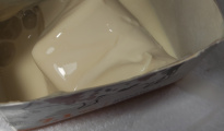 Здравствуйте! Купили Шадринское молоко. Когда в коробке осталось чуть-чуть молока, но налить его не смогли, решили вскрыть коробку. В коробке обнаружили какую-то массу.