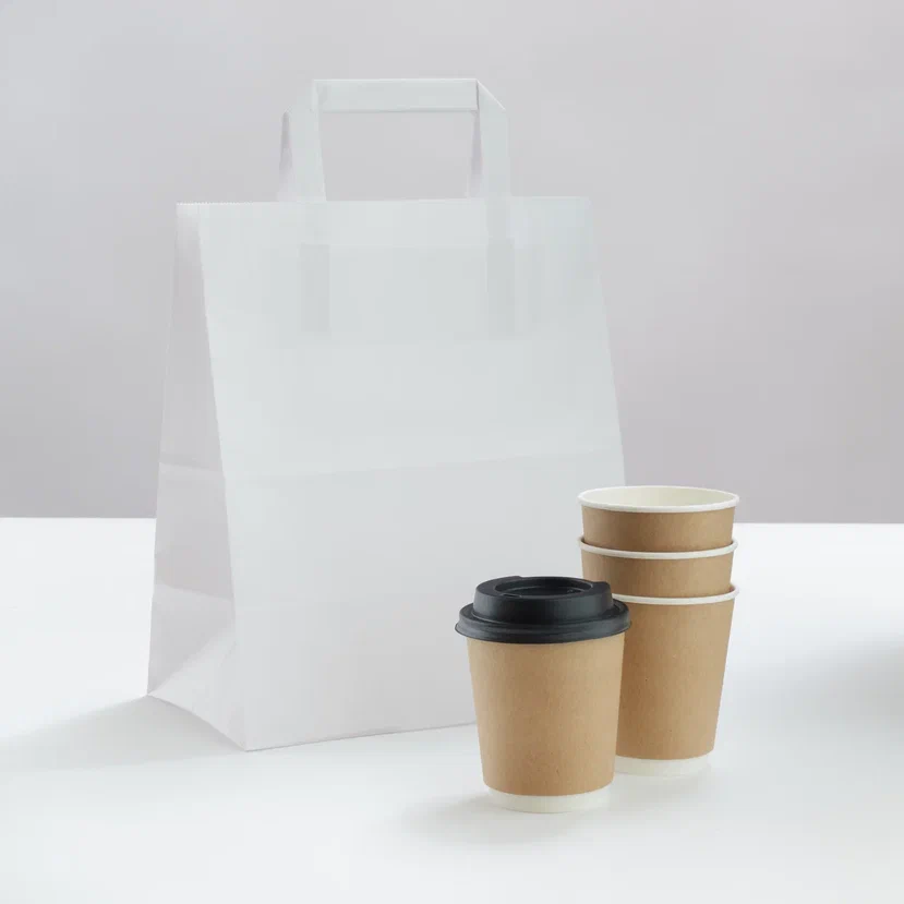 Мы предлагаем бумажные пакеты с плоскими и кручеными ручками. Двухслойные и однослойные стаканы.