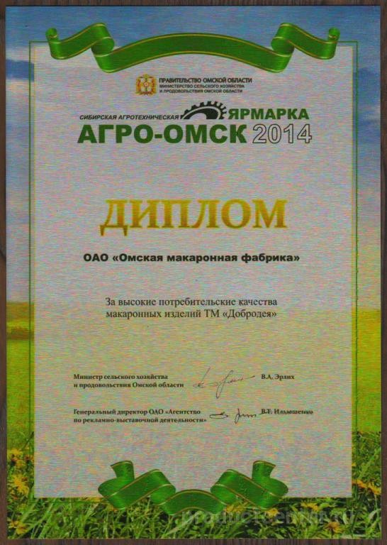 ОАО «Омская макаронная фабрика» крупнейший производитель макаронных изделий. Фабрика открыла свой первый цех в 1974 году в Омске. На момент 2018 года у фирмы есть представительства в Москве, Караганде и Улан-Баторе (для удобства координирования закупок и доставок). Предприятие сотрудничает только с покупателями на территории РФ, работает с оптовиками и дилерами. Изготавливает продукцию на заказ для дальнейшего брендирования, а также муку под собственной маркой «Добродея». Компания выпускает муку двух сортов – первого и высшего. Также в ассортименте есть продукция из твёрдых сортов пшеницы. Сырьё полностью соответствует ГОСТу.