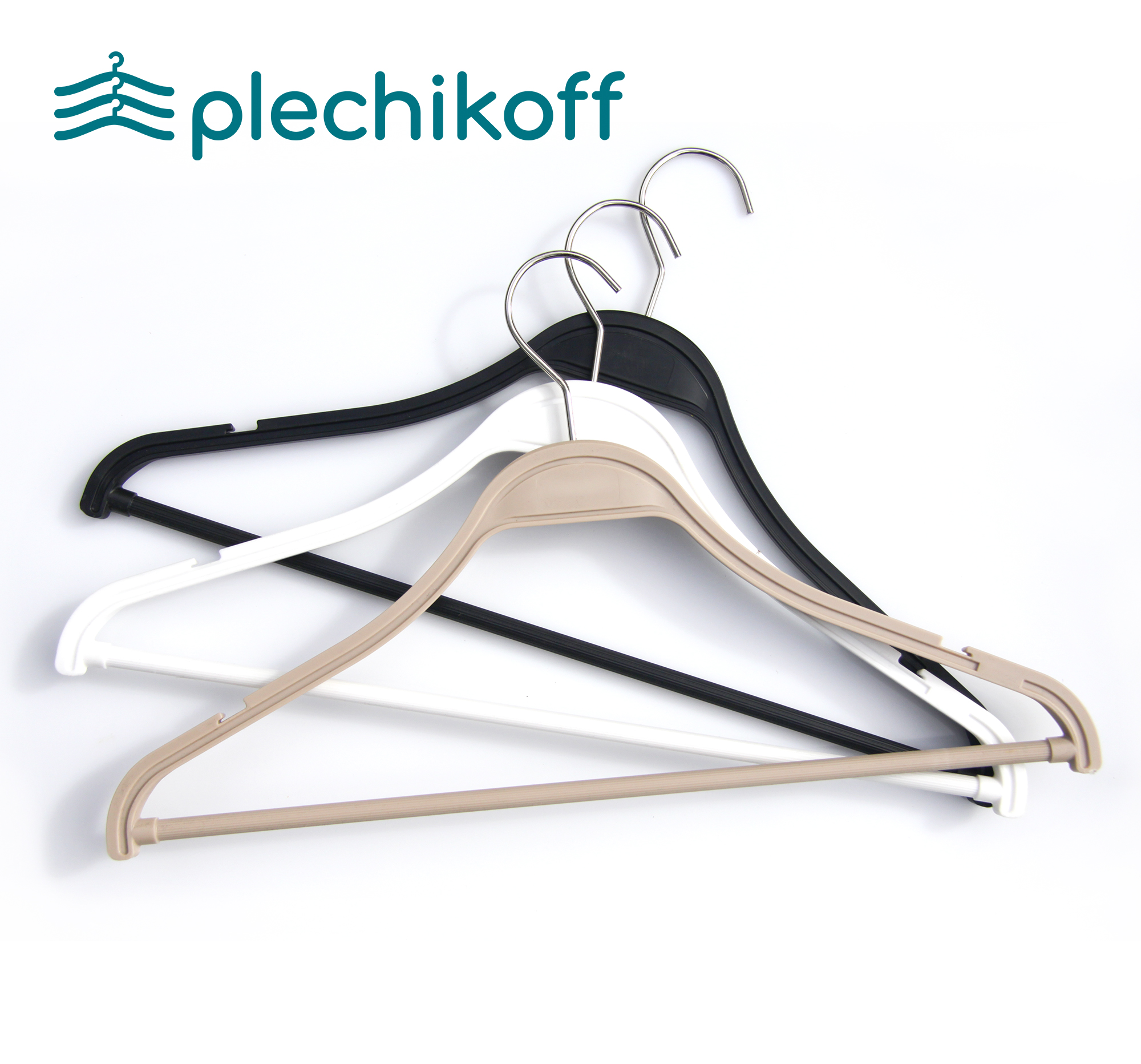 Компания PLECHIKOFF.ru предлагает широкий ассортимент вешалок из пластика и дерева. Собственное производство вешалок в Московской области. Предлагаем нанесение логотипа/персонализация вешалок. Изготовление вешалок в любом цвете под заказ/флокирование (бархатные вешалки). Доставка до ТК. Работаем со всей Россией.