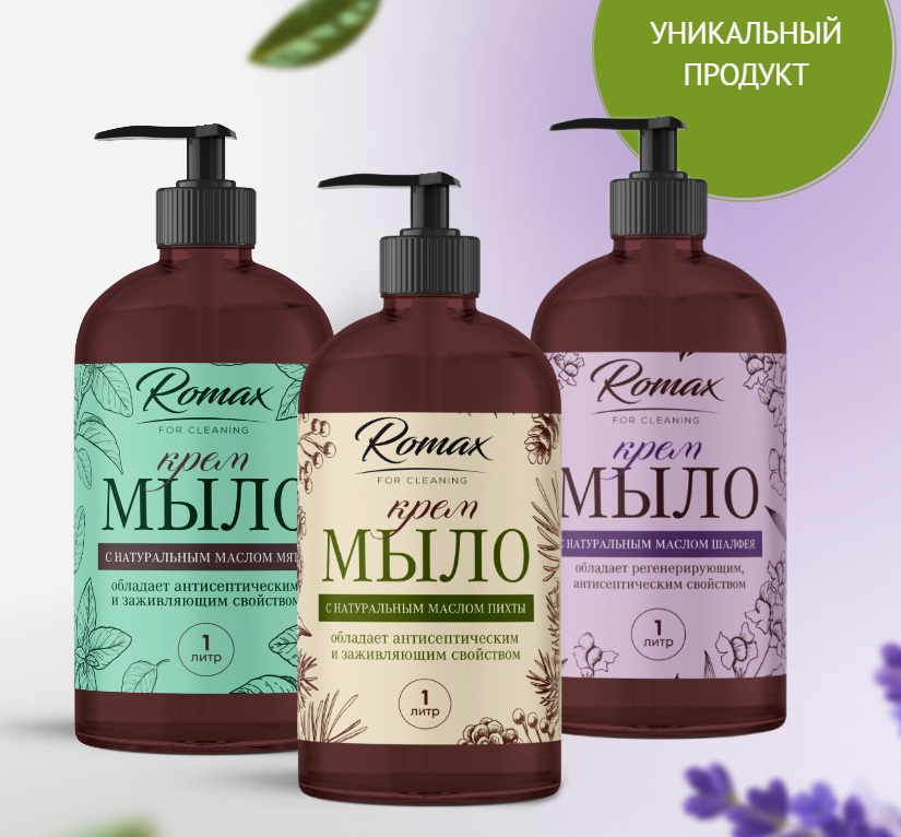 ROMAX – это компания по производству профессиональной автокосметики и бытовой химии. Мы выпускаем широкий ассортимент жидкого косметического и хозяйственного мыла, средств для мытья посуды, пола, чистящее средство «Антижир», универсальные средства для уборки, очистители для различных поверхностей.
