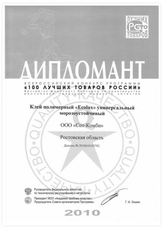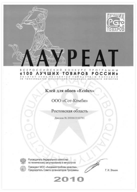 Компания «Сот-Комби» основана в 2005 году ведёт активную работу по разработке рецептур, производству и продвижению в торговых компаниях обойного клея на основе КМЦ как на основе отечественного сырья так и импортного (КМЦ и КМЦ-ЭКСТРА), модифицированного крахмала (EMCOL и ECONOM), модифицированного крахмала с добавлением ПВА (ECOLUX), модифицированного крахмала высшей степени очистки (ECOLUX PROFESSIONAL). Ассортимент продукции расширился за счет универсального полимерного клея под собственными торговыми марками «ECOLUX», «FIERY DRAGON-огненный дракон» и «РУССКИЙ ТИТАН». В 2010 г. наша продукция — клей обойный ECOLUX оценен золотым дипломом Всероссийского конкурса программы «СТО ЛУЧШИХ ТОВАРОВ РОССИИ». Клей полимерный ECOLUX универсальный, морозоустойчивый так же отмечен дипломом Всероссийского конкурса программы «СТО ЛУЧШИХ ТОВАРОВ РОССИИ». В 2011 г. наша продукция — клей обойный ECONOM оценен золотым дипломом Всероссийского конкурса программы «СТО ЛУЧШИХ ТОВАРОВ РОССИИ». Клей универсальный полимерный FIERY DRAGON так же отмечен дипломом Всероссийского конкурса программы «СТО ЛУЧШИХ ТОВАРОВ РОССИИ».