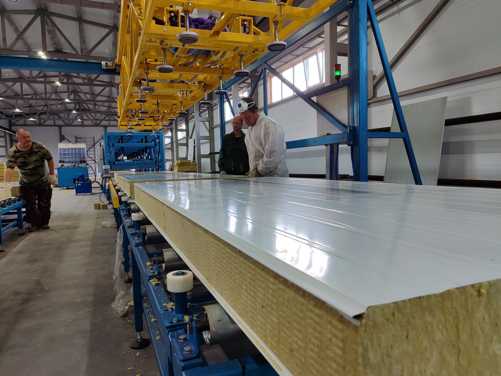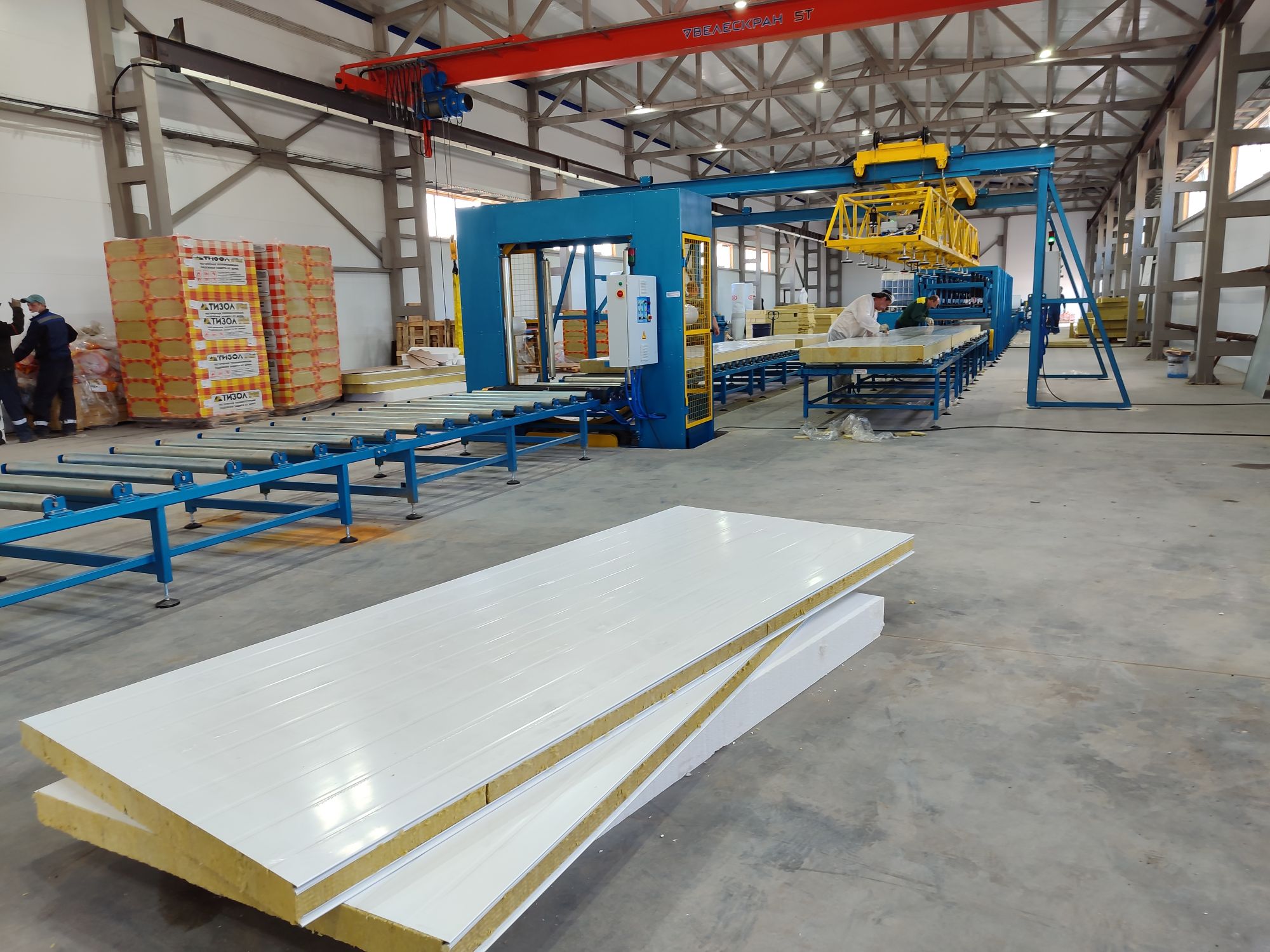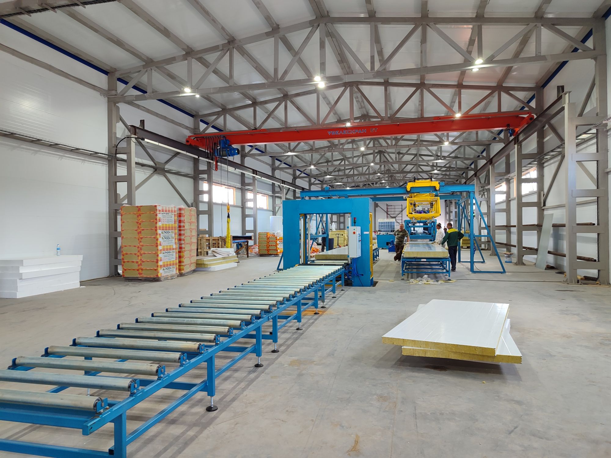 Для изготовления сэндвич-панелей используется полуавтоматическая производственная линия ЛП-9М. Объем выпускаемой продукции - 250 000 м² в год.