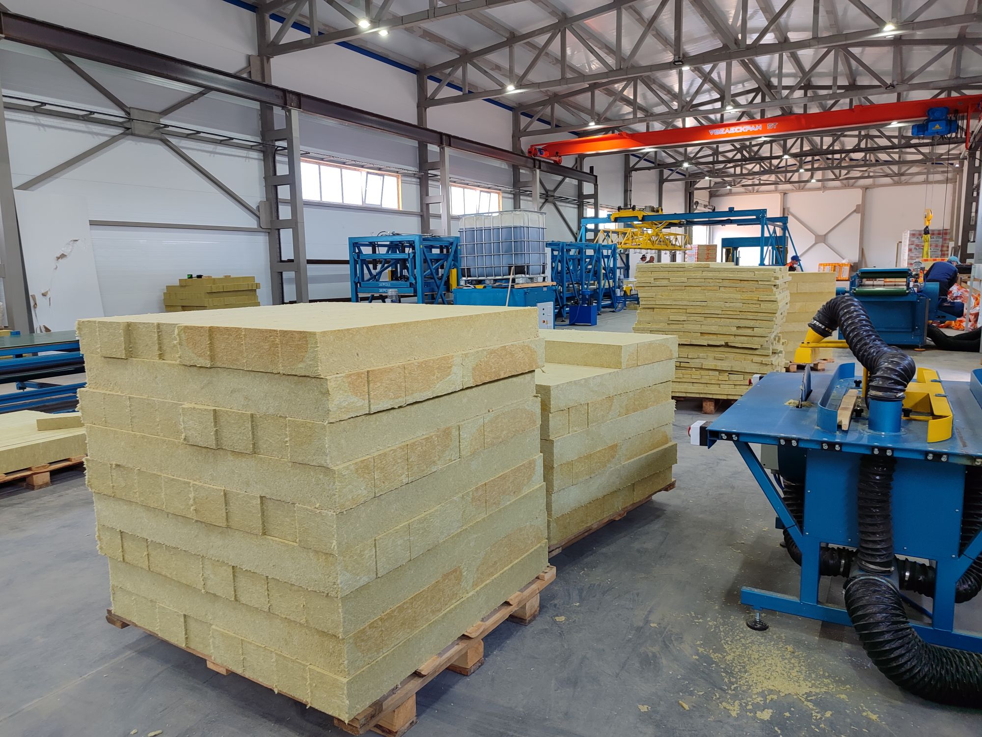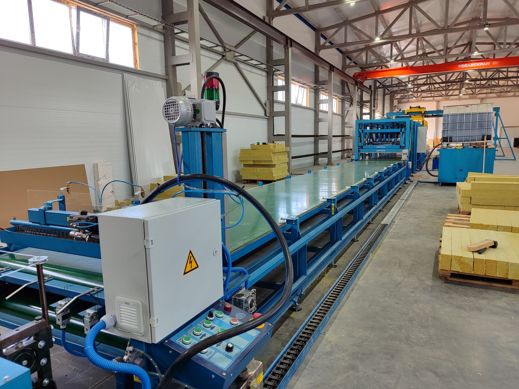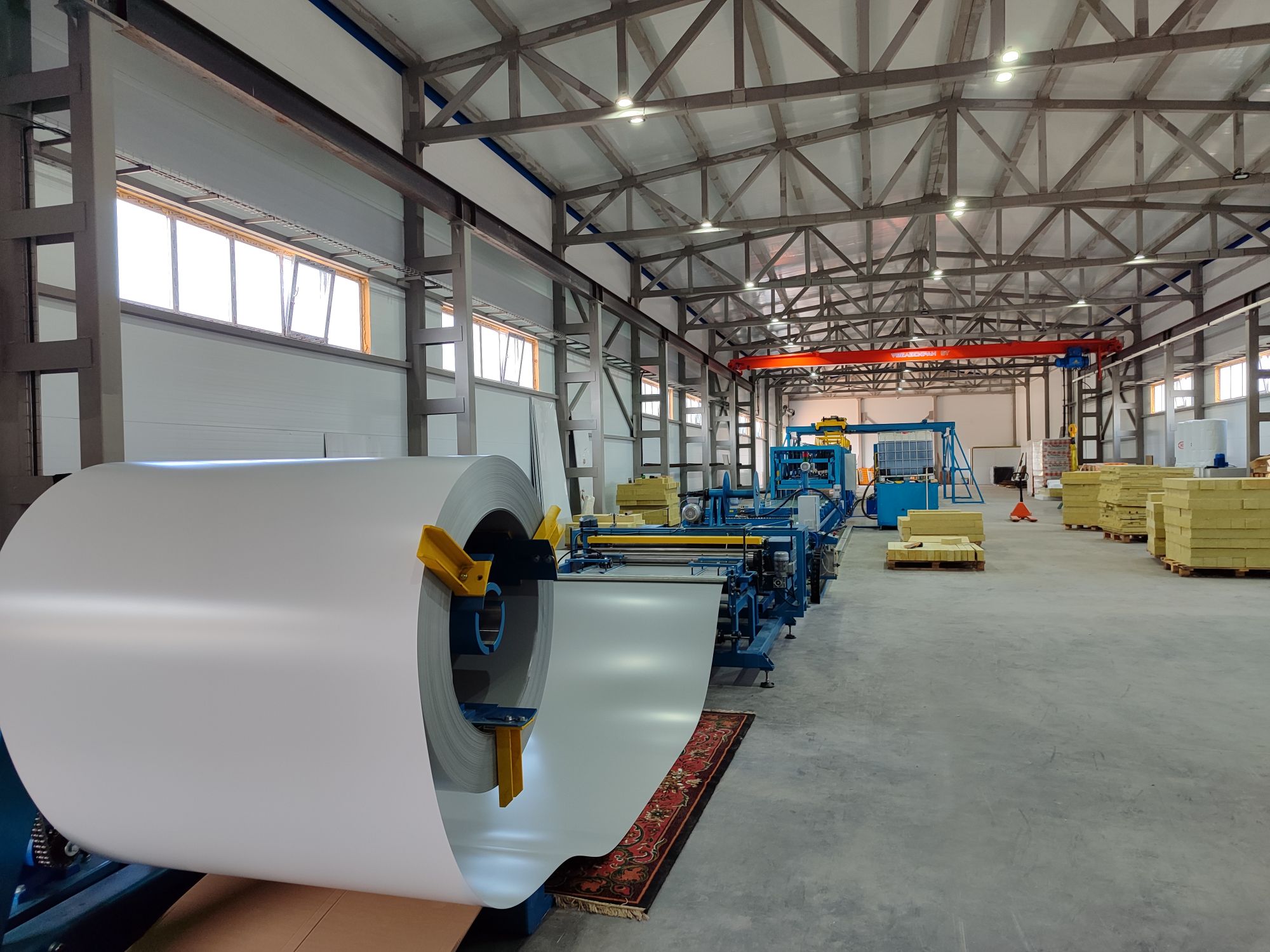 Для изготовления сэндвич-панелей используется полуавтоматическая производственная линия ЛП-9М. Объем выпускаемой продукции - 250 000 м² в год.