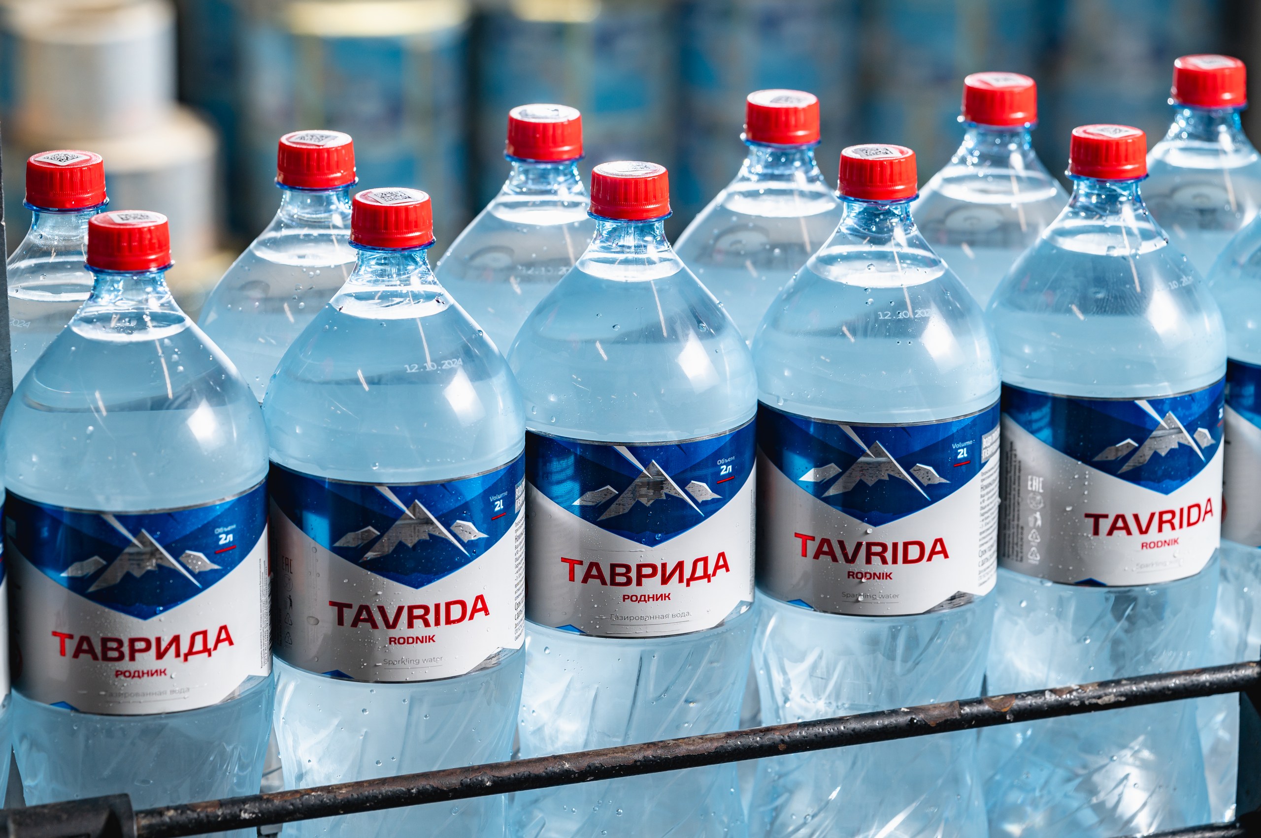 Завод «Таврида» – производство полного замкнутого цикла. Автоматизированные процессы происходят без непосредственного участия оператора: выдув бутылки, четырехэтапное обеззараживание воды из скважины, розлив и герметичное укуповаривание бутылки, а также прохождение продукции через этикировочную линию.