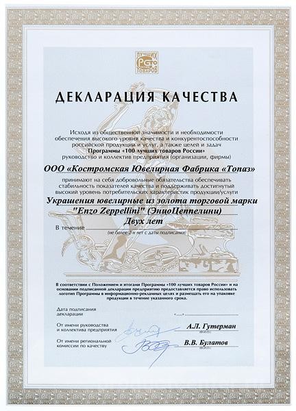Ювелирный завод «Топаз» был основан в 1992 году в Костроме, когда несколько ювелиров государственного объединения «Рембыттехника» решили создать свое дело. За прошедшие более двадцати лет компания превратилась из небольшой мастерской в одного из лидеров ювелирной отрасли страны. Мастера вспоминают, как на заре становления фабрики в кредит были приобретены 6 килограмм золота, которые осваивались в течение года. Сейчас на «Топазе» в производстве используется до 15 килограмм золота в день. Ювелирный завод Топаз — один из лидеров отрасли. В настоящее время ювелирная фабрика «Топаз» в оснащенности не уступает лучшим мировым предприятиям. Она располагает самым современным оборудованием для полного цикла производства ювелирных украшений. На «Топазе» самостоятельно создают дизайн украшений, разрабатывают новые модели. Ювелирный завод «Топаз» располагает собственной химической лабораторией, позволяющей контролировать используемые в производстве материалы. Изделия проходят не только финальную проверку, но и контроль на каждом этапе производства.