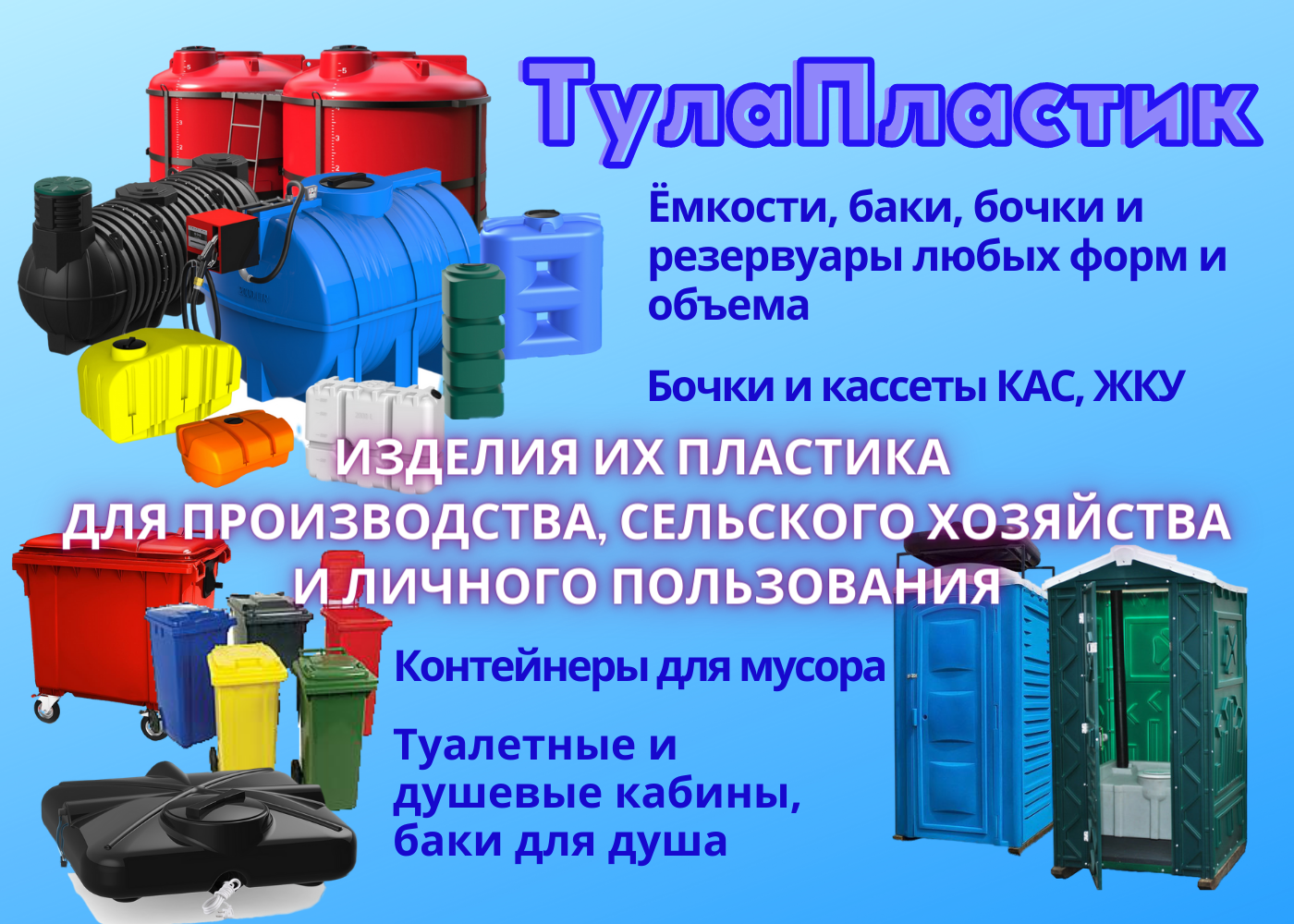 - Большие пластиковые ёмкости, резервуары, баки, бочки любых форм и предназначения, для хранения и перевозки питьевой и технической воды, пищевых продуктов, дизельного топлива, ГСМ и других агрессивных жидкостей;