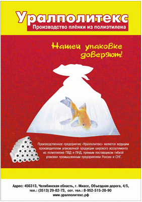 ООО «УралПолитекс» работает в Челябинской области больше 12 лет и изготавливает пленку и упаковку из ПВД и ПНД (полиэтилена высокого и низкого давления). Мы реализуем: мешки, пакеты и пленку. Доставка в радиусе 100 км от производства (г Миасс) – бесплатно. Доставим в города России транспортными компаниями (доставка оплачивается отдельно).