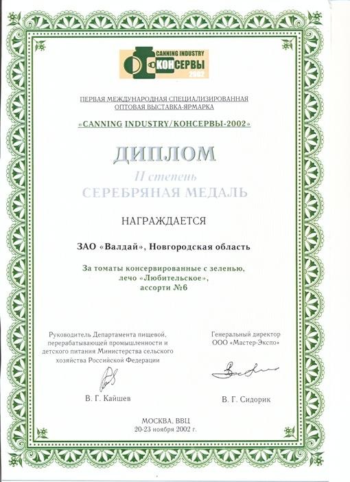 Валдайский консервный завод одно из старейших предприятий отрасли, основанный в 1941 году. Он расположен в г. Валдай, экологически чистом регионе Новгородской области. Предприятие успешно развивается, объединяя опыт прежних лет с последними разработками в области производства плодоовощных консервов. Производственная база консервного завода оснащена современным оборудованием импортного производства, а также компьютерной системой управления технологическим процессом. На заключительном этапе производства используются новейшие технологии стерилизации консервов. Процесс изготовления консервов предусматривает жесткий контроль как качества сырья, так и готовой продукции. Дополнительный контроль качества осуществляется заводской лабораторией. Все консервы, выпускаемые под ТМ «Валдайский погребок» изготавливаются в соответствии с требованиями ГОСТов и ТУ. При производстве применяются щадящие технологии, позволяющие сохранить природный вкус и полезные свойства продукта.