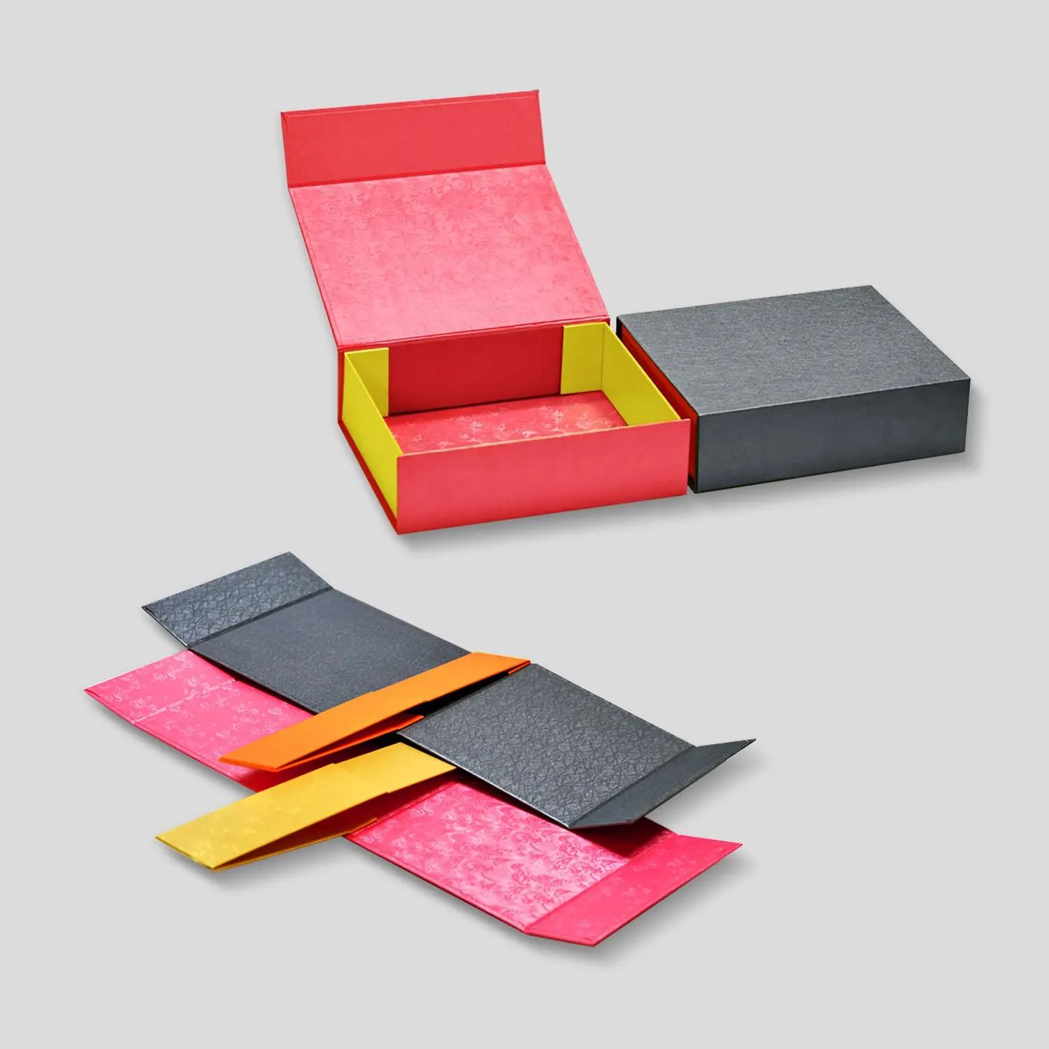 Наша компания предлагает полный цикл производства индивидуальной картонной упаковки и подарочной упаковки из переплетного картона по размерам и параметрам заказчика, а также предоставляет возможность заказать некоторые полиграфические операции по отдельности.