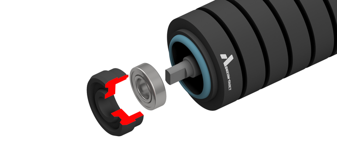 Конвейерные амортизирующие ролики представляют собой обыкновенный гладкие ролики, усиленные с помощью резиновых колец по всей длине тела. Делается это с целью снижения нагрузок на подвижные части конвейера и/или снижения силы удара груза об поверхность конвейера.