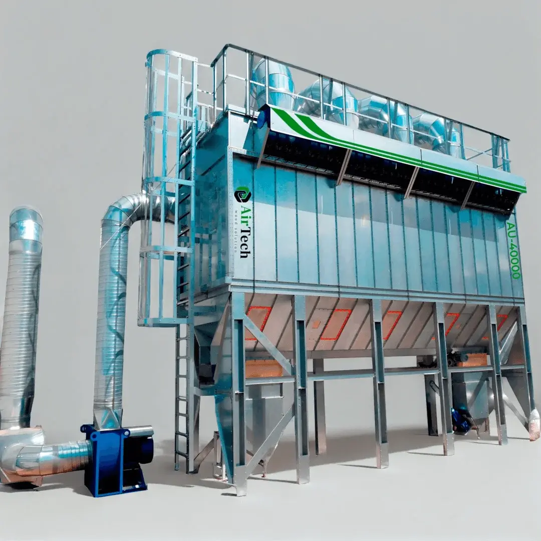 Промышленная аспирационная установка AIRTECH AU-40V производительностью 40 000 м³/ч — это высокомощное профессиональное решение для крупных деревообрабатывающих комбинатов и мебельных производств. Оснащённая 232 рукавными фильтрами, установка обеспечивает эффективную очистку воздуха от древесной пыли, стружки и опилок с уровнем фильтрации до 99%, что позволяет безопасно возвращать очищенный воздух обратно в рабочее помещение. Такое решение способствует поддержанию стабильных санитарно-гигиенических условий, повышению безопасности труда и снижению энергозатрат. Установка предназначена для создания централизованных систем аспирации в производственных цехах и разрабатывается на основании индивидуального проекта с учётом масштабов и специфики предприятия.
