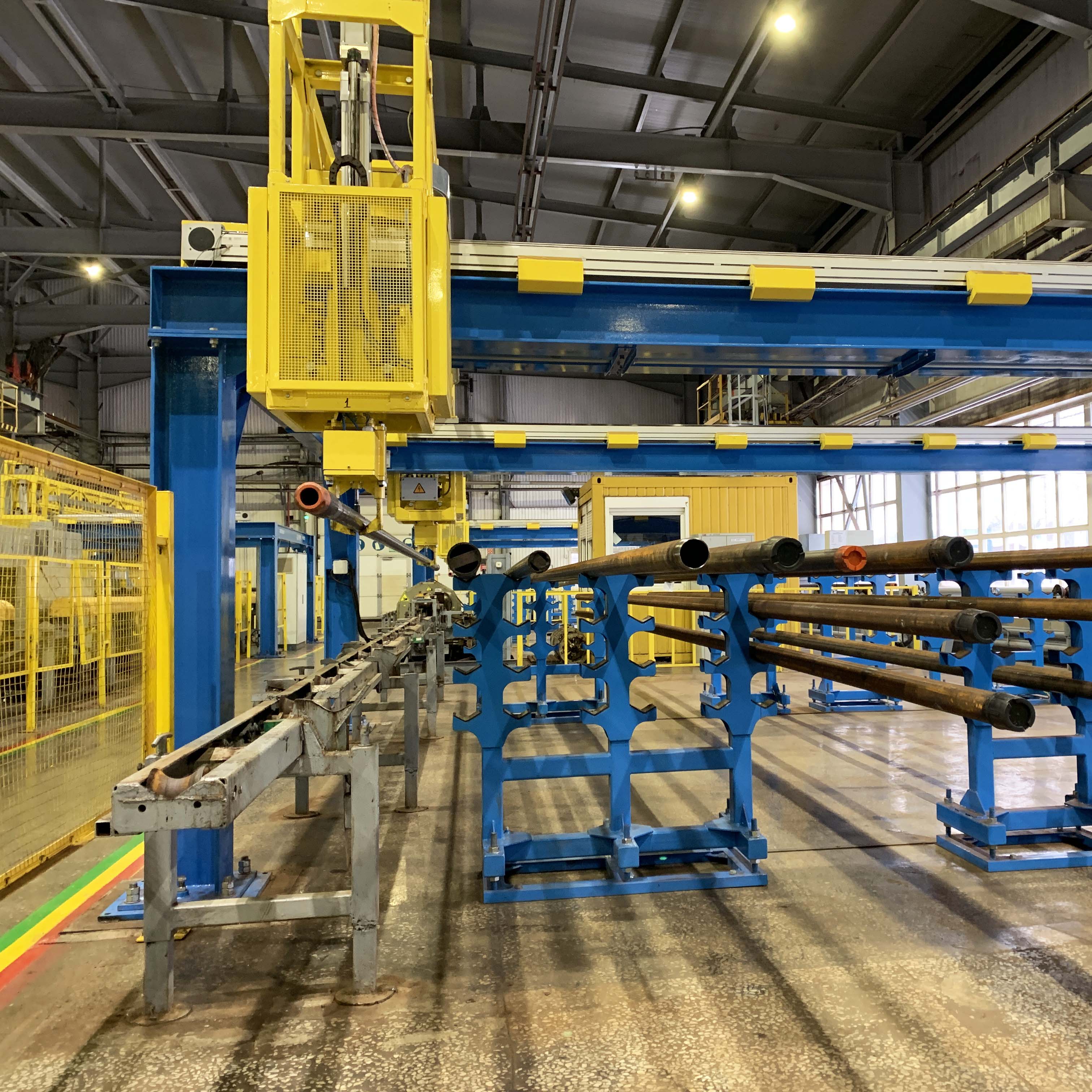 Автоматизированная транспортная линия типа АТЛ-956 предназначена для автоматической перекладки труб от загрузочного цехового рольганга на накопительные стеллажи трубонарезных станков, установок дефектоскопии и другого технологического оборудования, загрузки и последующей выгрузки труб с обрабатывающего оборудования и выдачи обработанных труб на цеховой рольганг выгрузки.