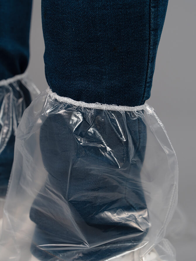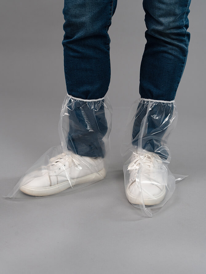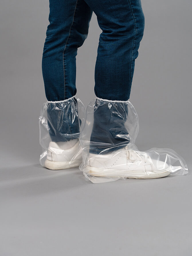 Высокие бахилы на резинке (Полиэтилен, прозрачность, 60 мкм)