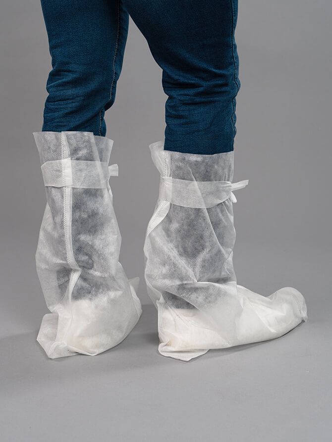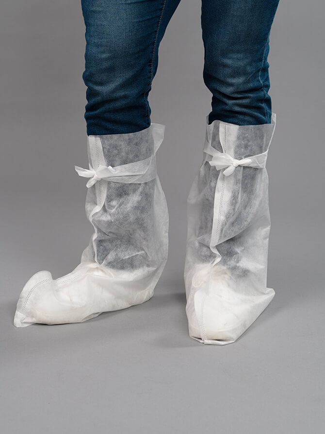 Высокие бахилы на завязках (белые, спанбонд 40 г/м²)